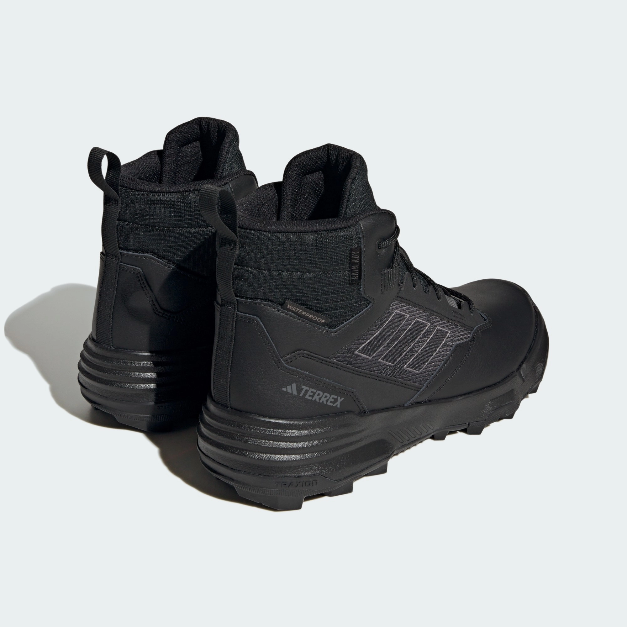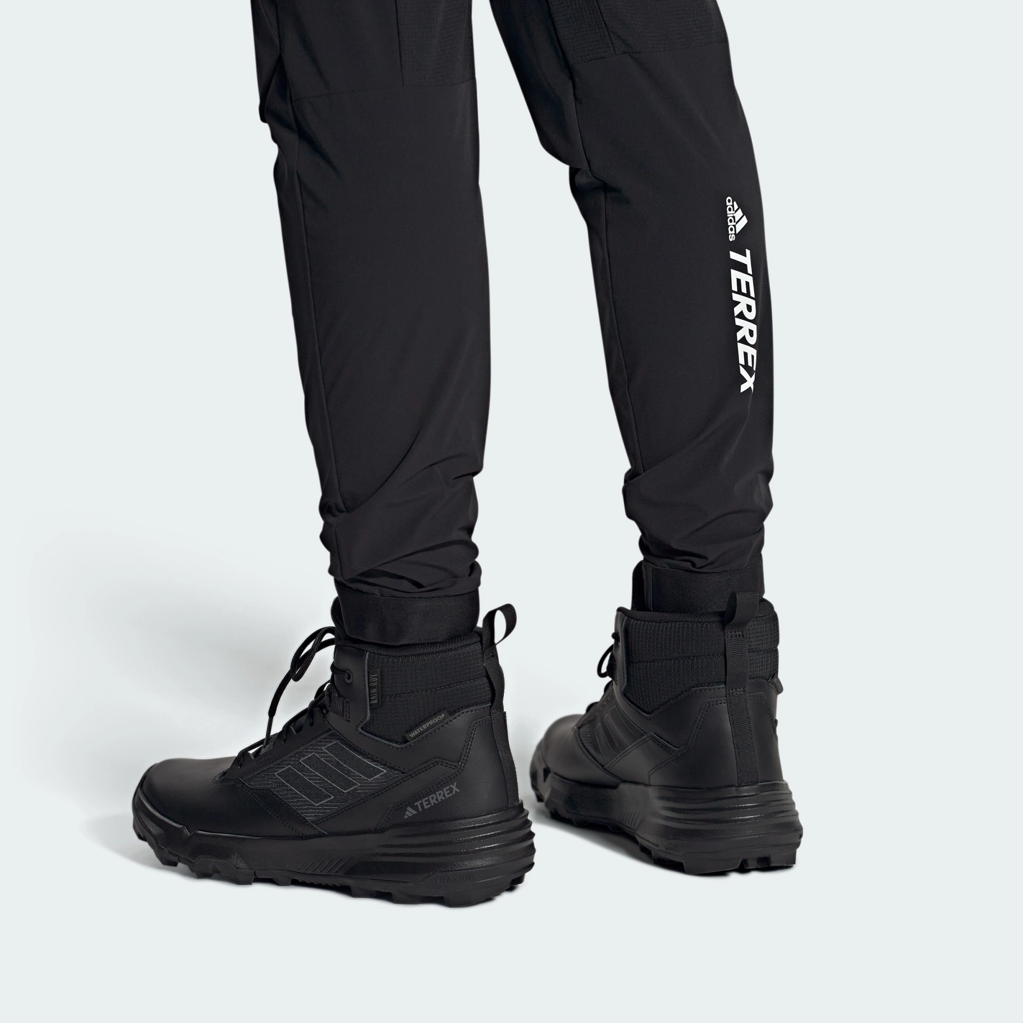Походи з друзями. Самотні пригоди. Походи із собакою. Ці туристичні черевики adidas – ті, які ти візьмеш, коли тебе покличуть пригоди. Готові до походу, вони збережуть твої ноги сухими завдяки водонепроникному захисту RAIN.RDY. Верх із нубуку водночас мʼякий і міцний, і все це на гумовій підошві Traxion, яка забезпечує зчеплення на пересіченій і нерівній місцевості.