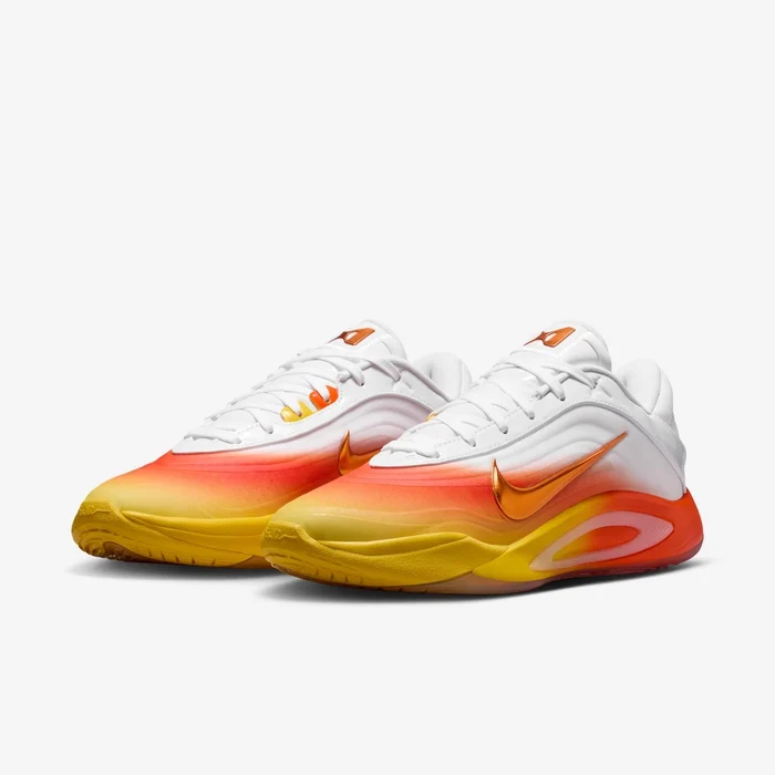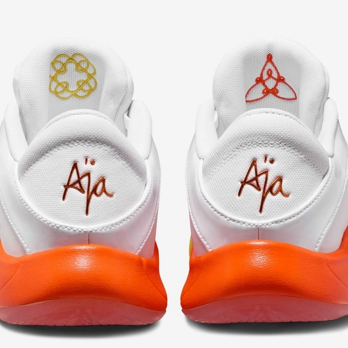 А'джа — королева Хелловіну. Костюми. Солодощі. Вечірки, які вона бігає, ніби біжить по всьому майданчику. Це захоплююче, коли найкращий гравець гри потрапляє до своєї сумки, повної солодощів. Цей дизайн на Хелловін — це суцільні насолоди, жодних трюків, із солодким градієнтом, який виринає на проміжній підошві, створеній для руху, та напівпрозорими текстурами, схожими на цукерки.