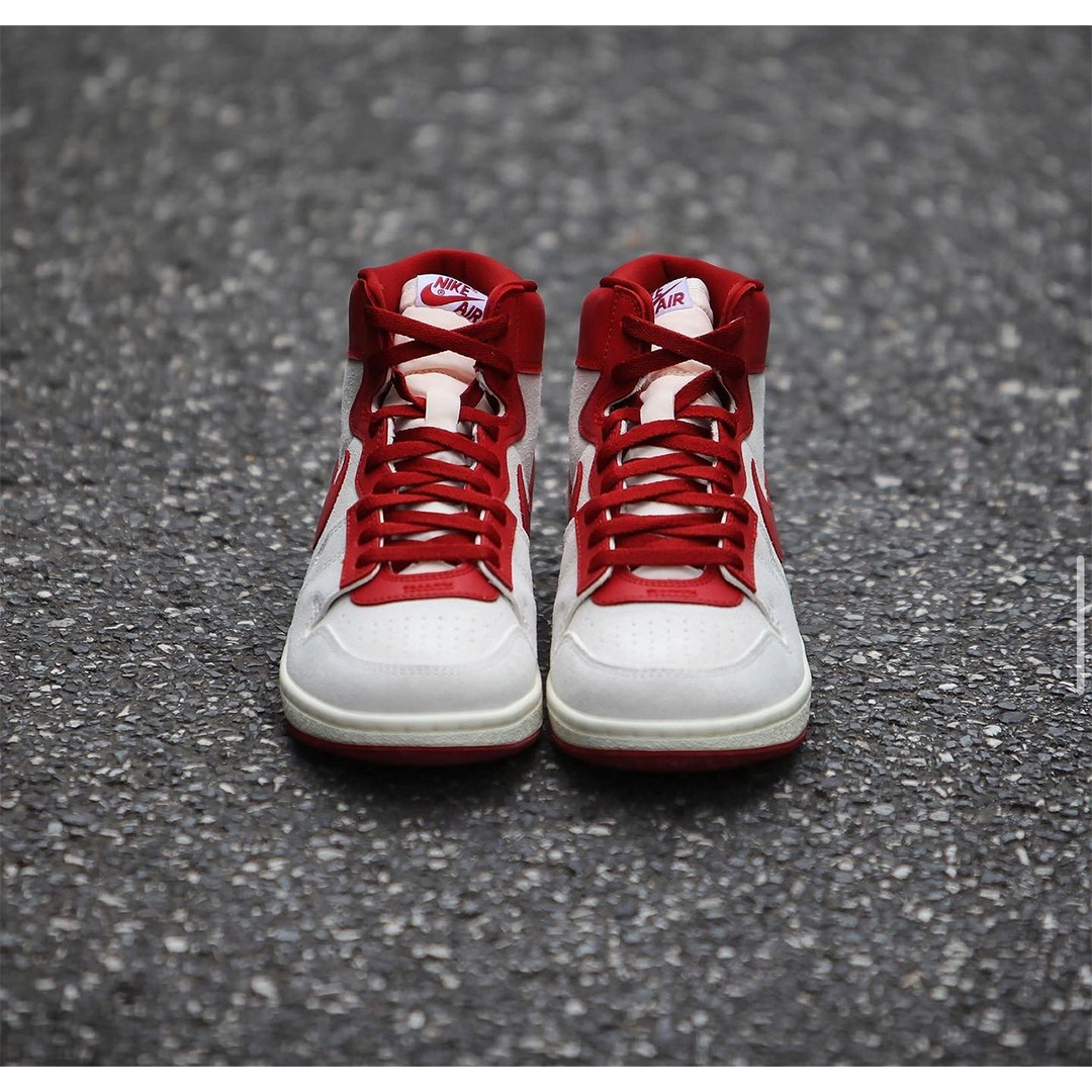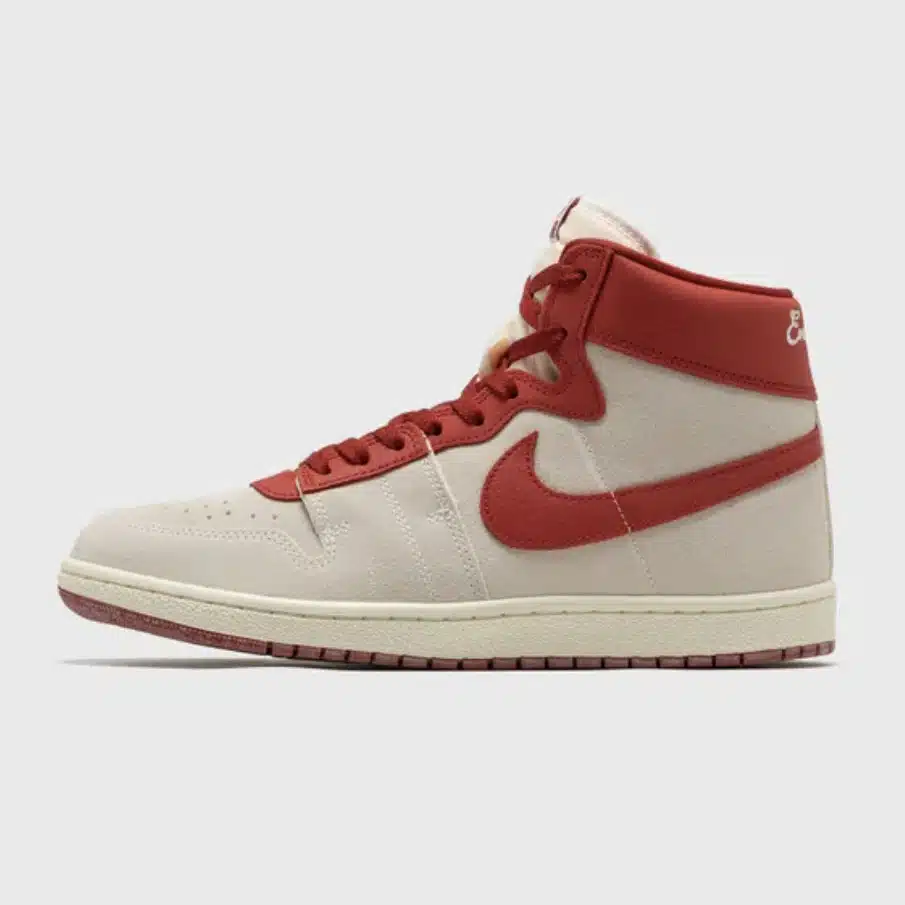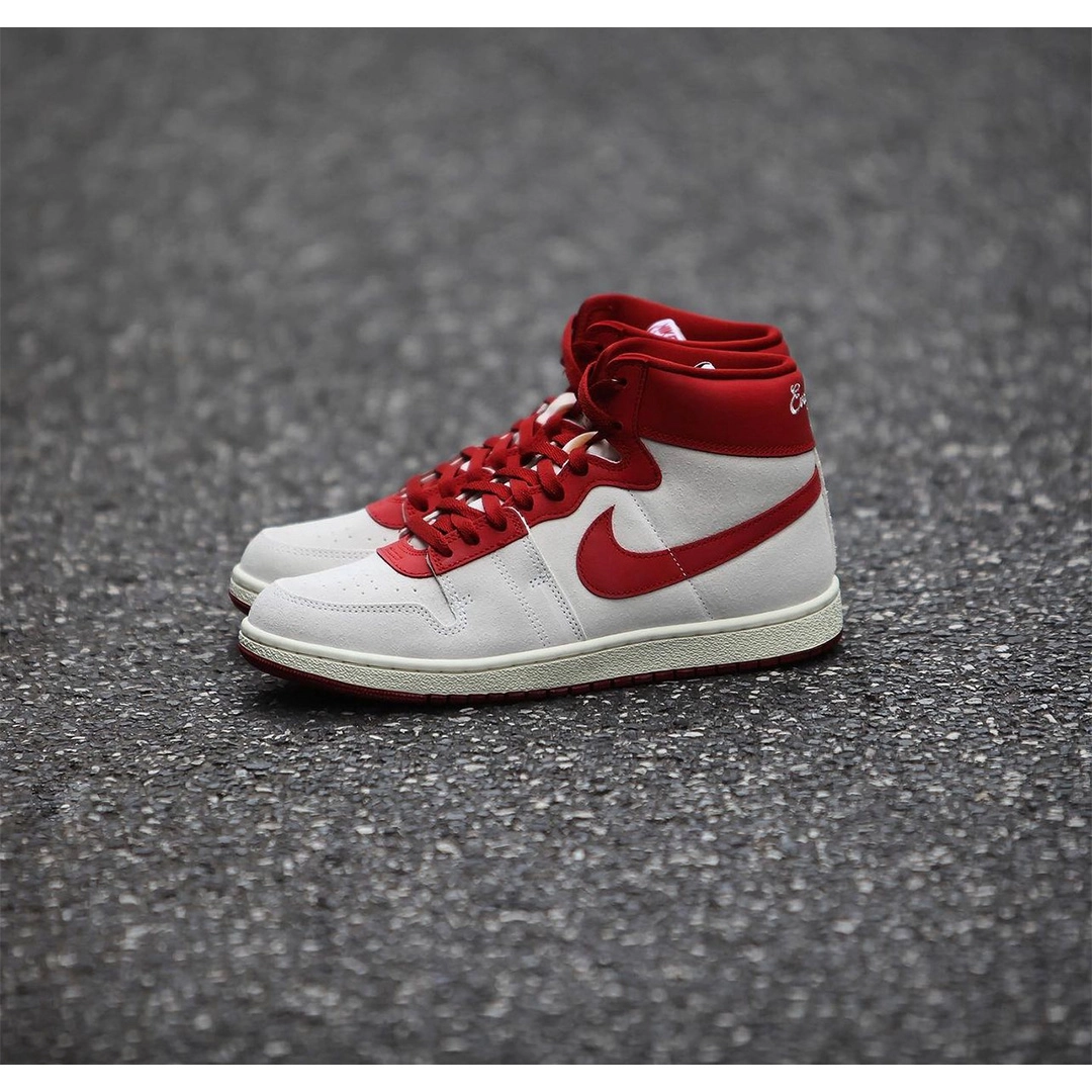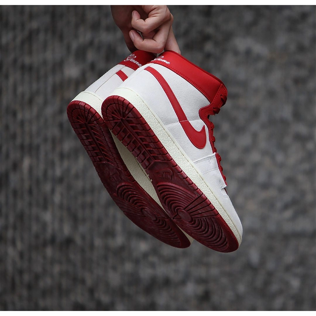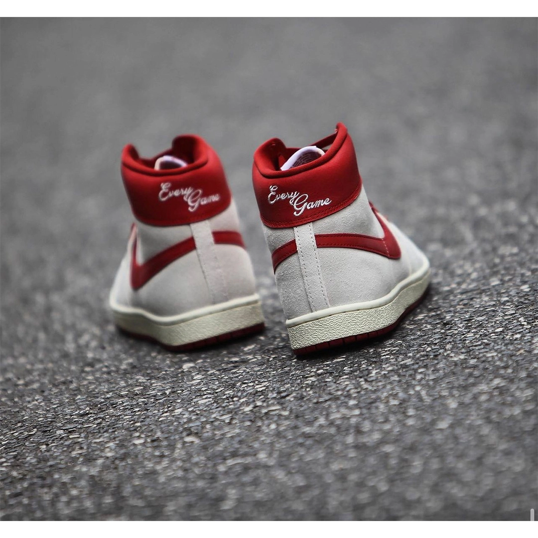 Кросівки Nike Jordan Air Ship PE SP “Every Game” відтворюють легендарний силует, який Майкл Джордан носив під час своїх перших сезонів у НБА. Верх виконаний із замші в кольорі Summit White, доповнений елементами з тріщинуватої шкіри Dune Red на язичку, Swoosh та комірці. На комірці вишито напис “Every Game”, що є відсилкою до шортів Джордана, які він носив у кожній грі. Проміжна підошва виконана в кольорі Sail, а підошва з червоною гумою забезпечує надійне зчеплення.