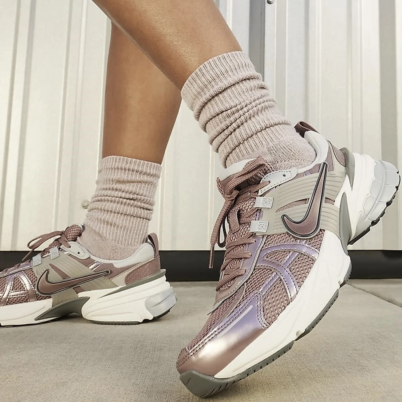 Сучасне переосмислення класичної моделі ранніх 2000-х. Верх поєднує сітку та синтетичну шкіру, що забезпечує легкість і довговічність. Підошва з подвійною щільністю піни поглинає удари, надаючи комфорт під час ходьби або бігу. Гумова підошва з візерунком «вафелька» забезпечує стабільне зчеплення.